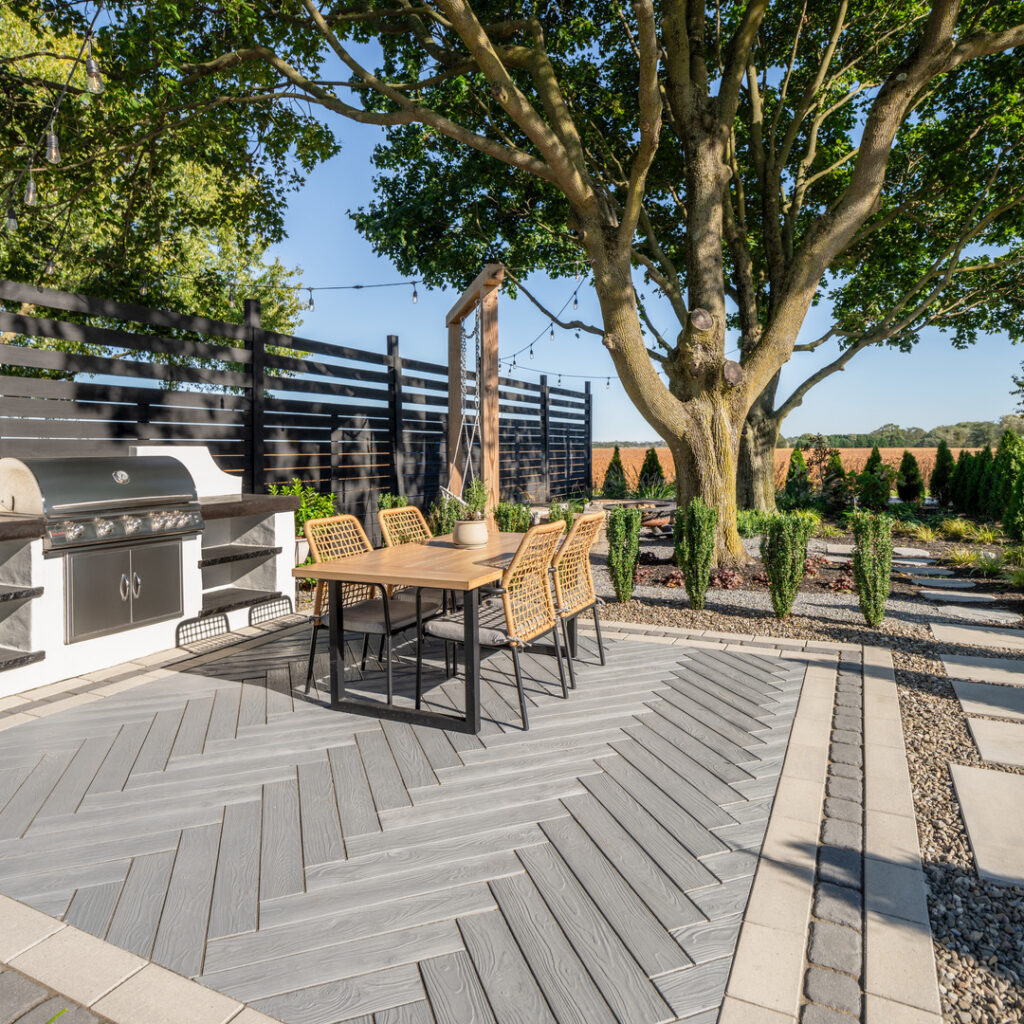 This beautiful backyard design is inspired by the current indoor-outdoor trend where indoor materials and patterns are used outside to create warm and cozy feeling.